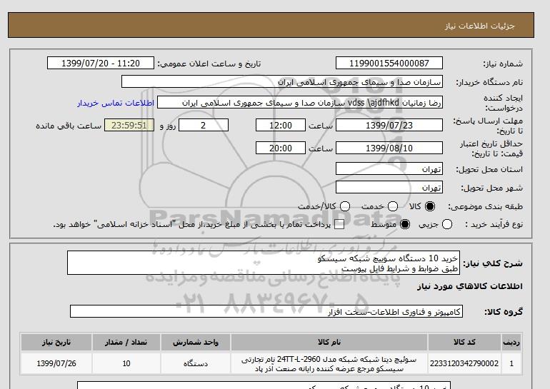 شرح کلی نیاز: خرید 10 دستگاه سوییچ شبکه سیسکو