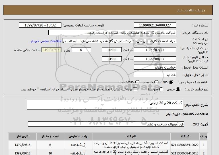 شرح کلی نیاز: گسکت 20 و 30 اینچی
