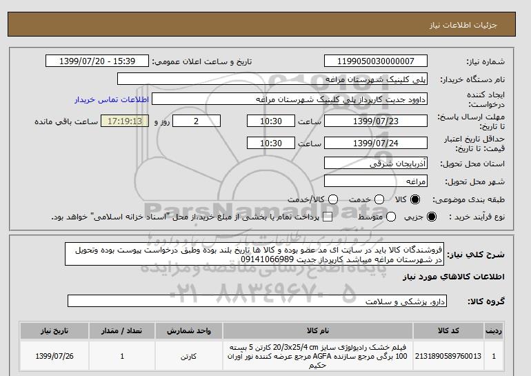 نام دستگاه خریدار:پلی کلینیک شهرستان مراغه