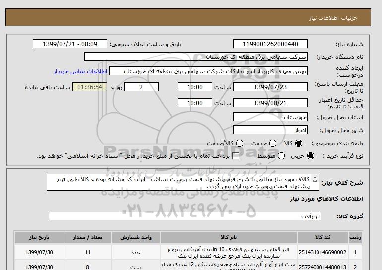 نام دستگاه خریدار:شرکت سهامی برق منطقه ای خوزستان