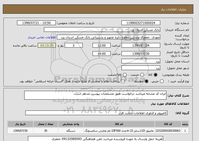نام دستگاه خریدار:بانک مسکن استان یزد