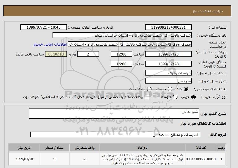 مناقصه شیرآلات نفتی و پالایشگاهی