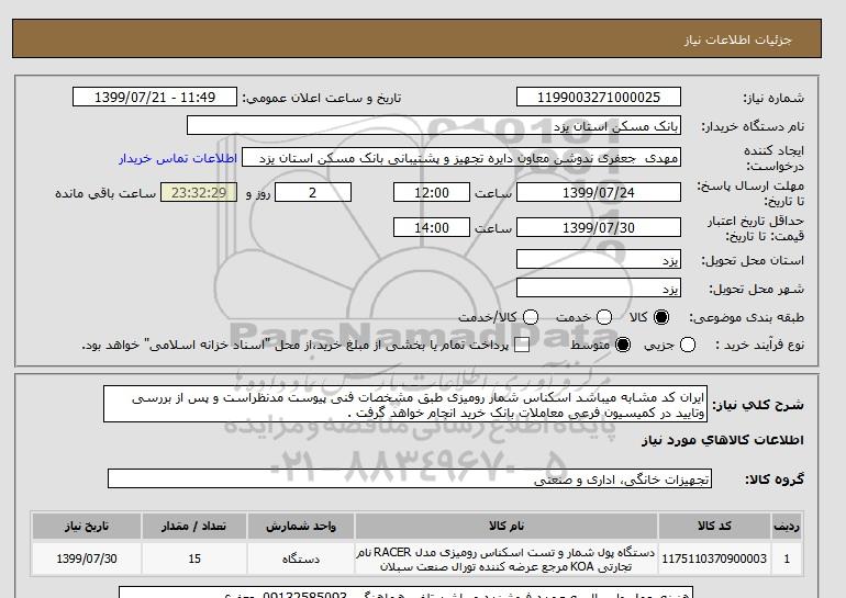 نام دستگاه خریدار:بانک مسکن استان یزد