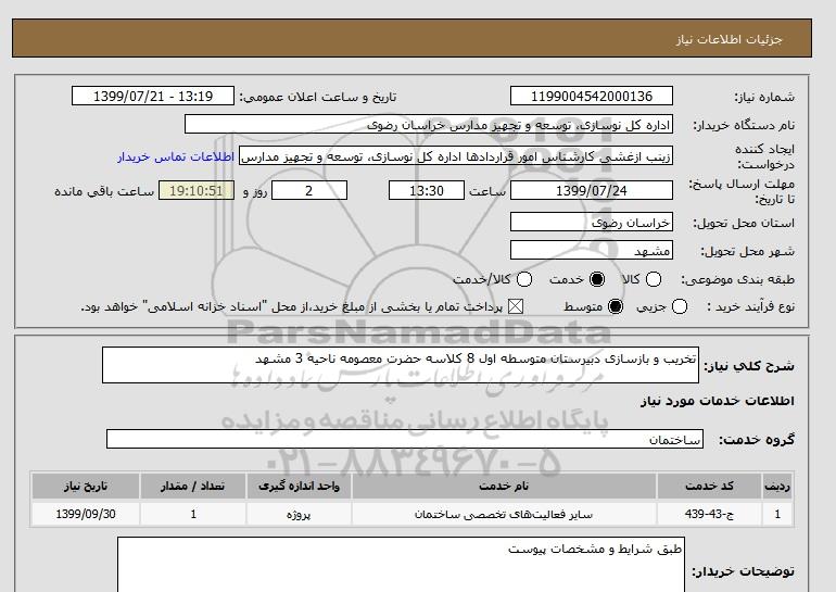 شرح کلی نیاز: تخریب و بازسازی دبیرستان متوسطه اول 8 کلاسه حضرت معصومه ناحیه 3 مشهد