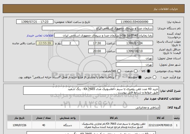 نام دستگاه خریدار:سازمان صدا و سیمای جمهوری اسلامی ایران