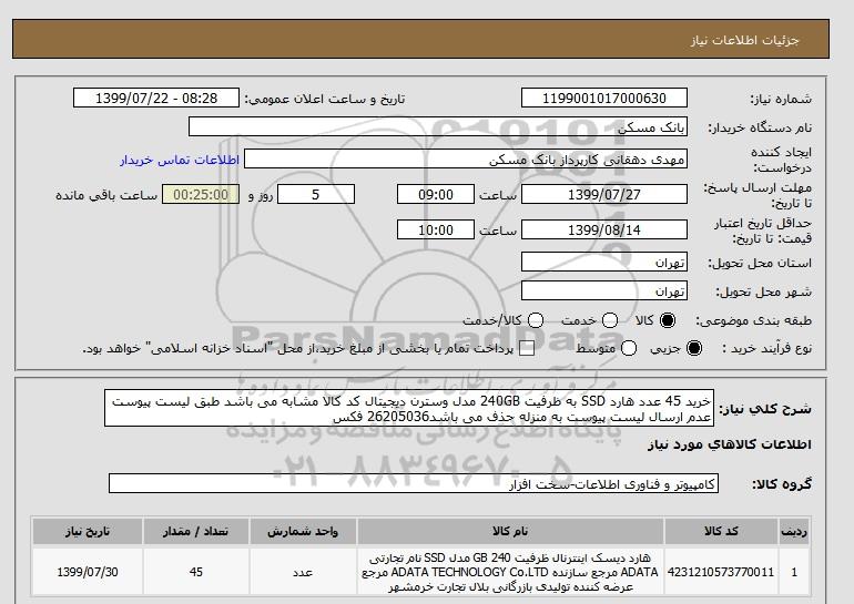 نام دستگاه خریدار:بانک مسکن