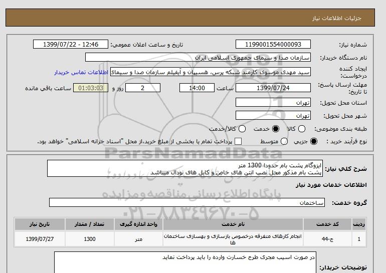 نام دستگاه خریدار:سازمان صدا و سیمای جمهوری اسلامی ایران