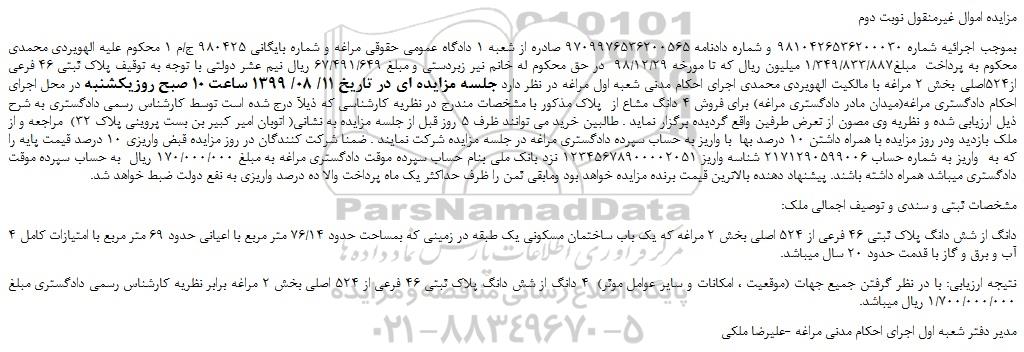 مزایده اموال غیرمنقول نوبت دوم