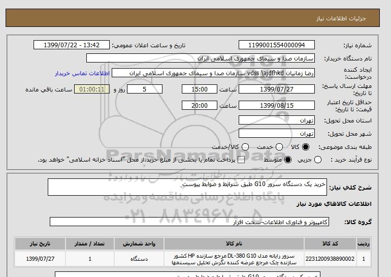 توضیحات خریدارخرید یک دستگاه سرور G10 طبق شرایط و ضوابط پیوست