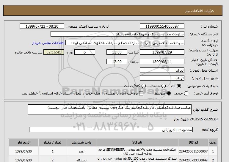نام دستگاه خریدار:سازمان صدا و سیمای جمهوری اسلامی ایران