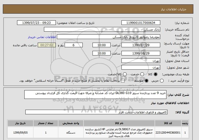 استعلام خرید 9 عدد پردازنده سرور DL380 G10 ایران کد مشابه و صرفا جهت قیمت گذاری کل قرارداد پیوستی, استعلام خرید 9 عدد پردازنده سرور DL380 G10 ایران کد مشابه و صرفا جهت قیمت گذاری کل قرارداد پیوستی
