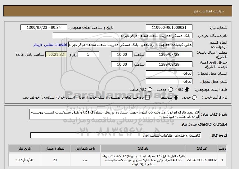 نام دستگاه خریدار: بانک مسکن مدیریت شعب منطقه مرکز تهران