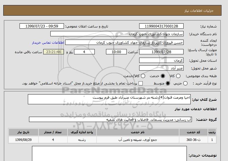 شرح کلی نیاز: احیا ومرمت قنوات(4)رشته در شهرستان عنبرآباد طبق فرم پیوست