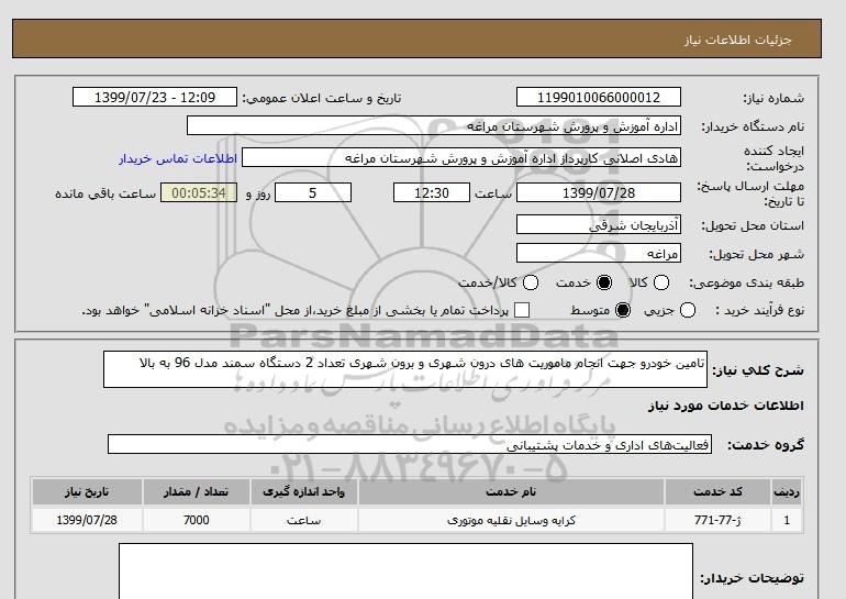 استعلام تامین خودرو جهت انجام ماموریت های درون شهری و برون شهری تعداد 2 دستگاه سمند مدل 96 به بالا , استعلام تامین خودرو جهت انجام ماموریت های درون شهری و برون شهری تعداد 2 دستگاه سمند مدل 96 به بالا