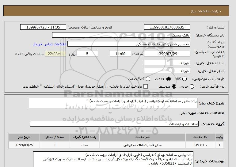 شرح کلی نیاز: پشتیبانی سامانه ویدئو کنفرانس (طبق قرارداد و الزامات پیوست شده)