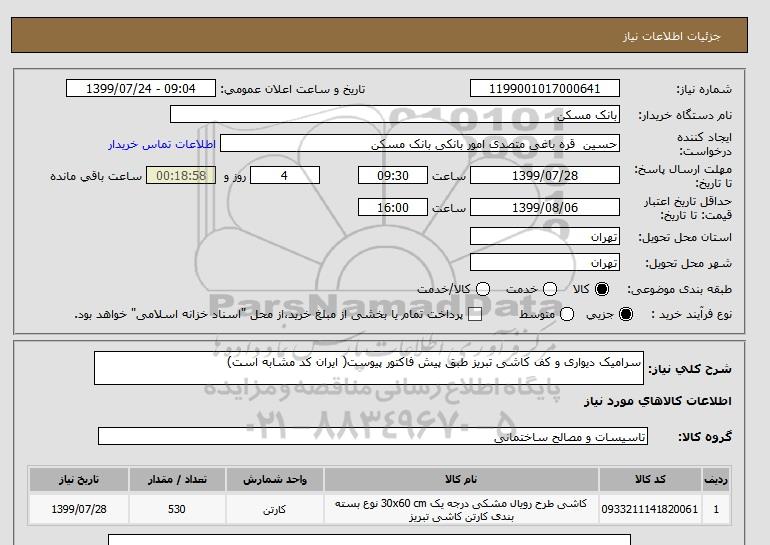 شرح کلی نیاز: سرامیک دیواری و کف کاشی تبریز طبق پیش فاکتور پیوست( ایران کد مشابه است)