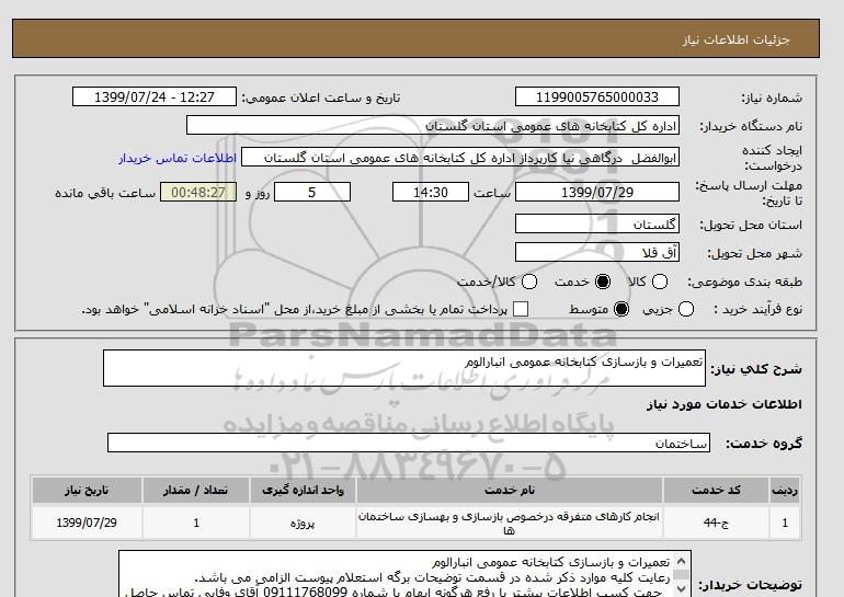 شرح کلی نیاز: تعمیرات و بازسازی کتابخانه عمومی انبارالوم