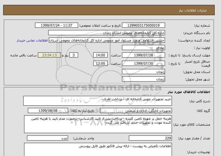 شرح کلی نیاز: خرید تجهیزات چوبی کتابخانه ای - پرداخت نقدی -