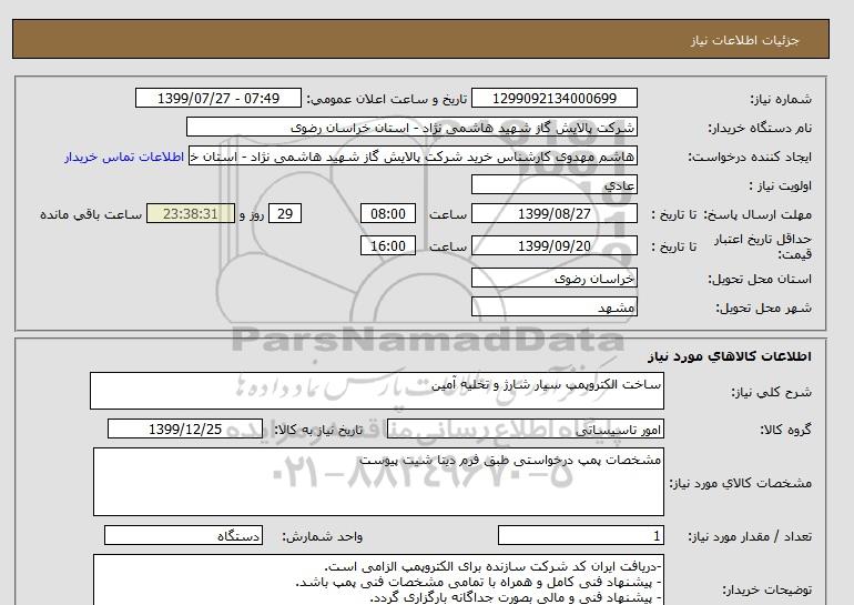 نام دستگاه خریدار:شرکت پالایش گاز شهید هاشمی نژاد - استان خراسان رضوی