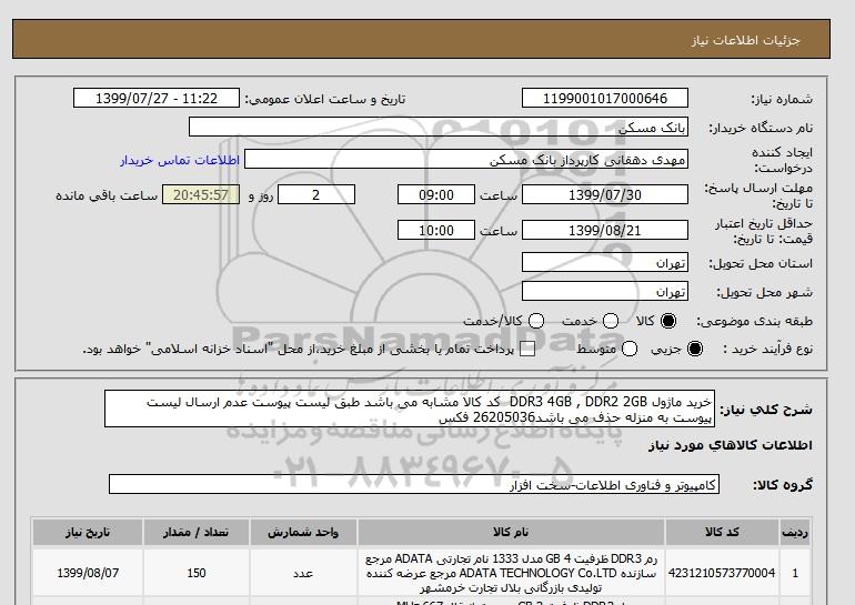 شرح کلی نیاز: خرید ماژول DDR3 4GB , DDR2 2GB کد کالا مشابه می باشد طبق لیست پیوست عدم ارسال لیست پیوست به منزله حذف می باشد26205036 فکس