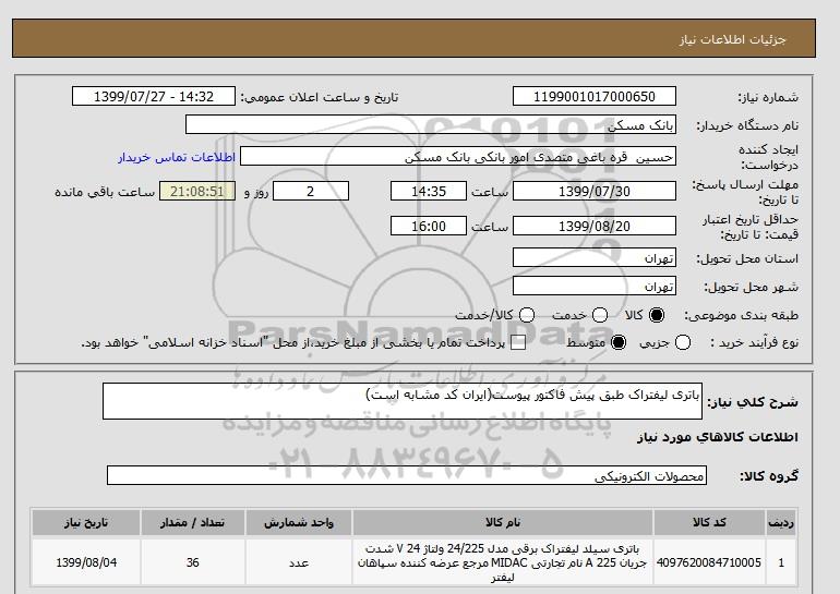 شرح کلی نیاز: باتری لیفتراک طبق پیش فاکتور پیوست(ایران کد مشابه است)
