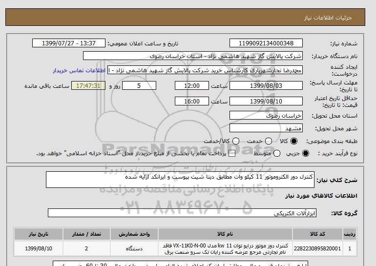 نام دستگاه خریدار:شرکت پالایش گاز شهید هاشمی نژاد - استان خراسان رضوی