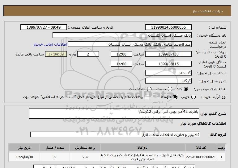 شرح کلی نیاز: یاطری 42آمپر یوپی اس ایرانی 12ولت/