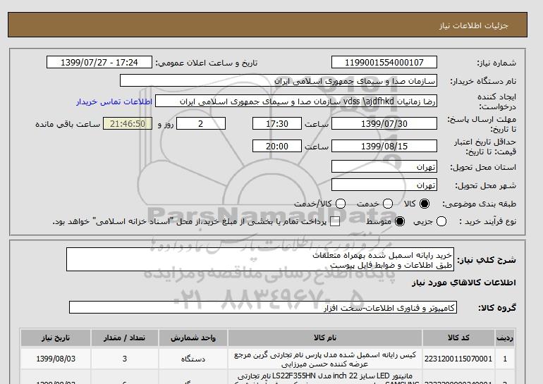 شرح کلی نیاز: خرید رایانه اسمبل شده بهمراه متعلقات طبق اطلاعات و ضوابط فایل پیوست