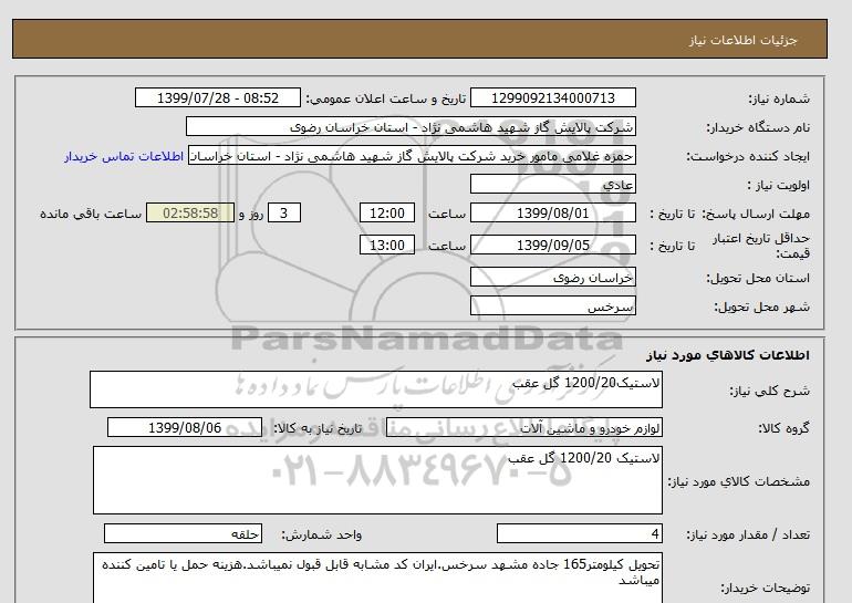 نام دستگاه خریدار:شرکت پالایش گاز شهید هاشمی نژاد - استان خراسان رضوی