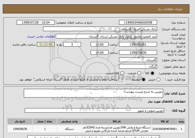 نام دستگاه خریدار:بانک مسکن استان گلستان