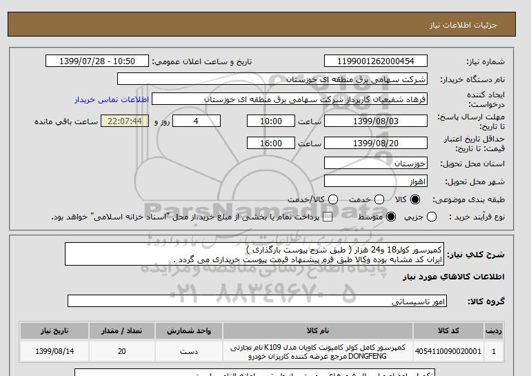 شرح کلی نیاز: کمپرسور کولر18 و24 هزار ( طبق شرح پیوست بارگذاری )