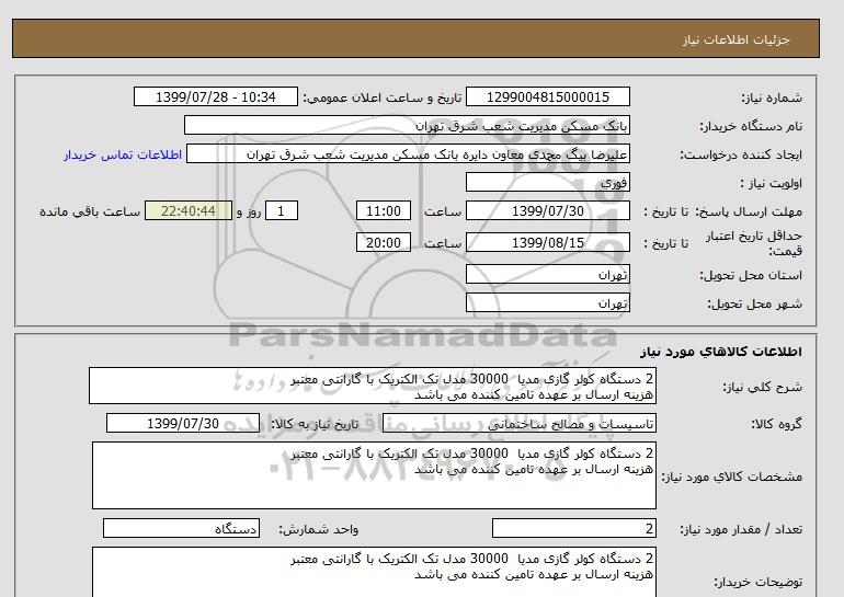 نام دستگاه خریدار:بانک مسکن مدیریت شعب شرق تهران