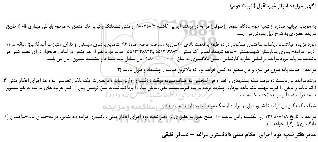 شعبه صادر کننده:شعبه دوم اجرای احکام مدنی دادگستری شهرستان مراغه
