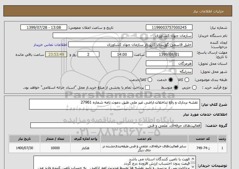 شرح کلی نیاز: نقشه برداری و رفع تداخلات اراضی غیر ملی طبق دعوت نامه شماره 27961