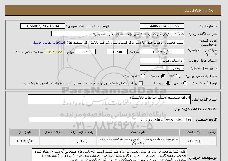 نام دستگاه خریدار:شرکت پالایش گاز شهید هاشمی نژاد - استان خراسان رضوی