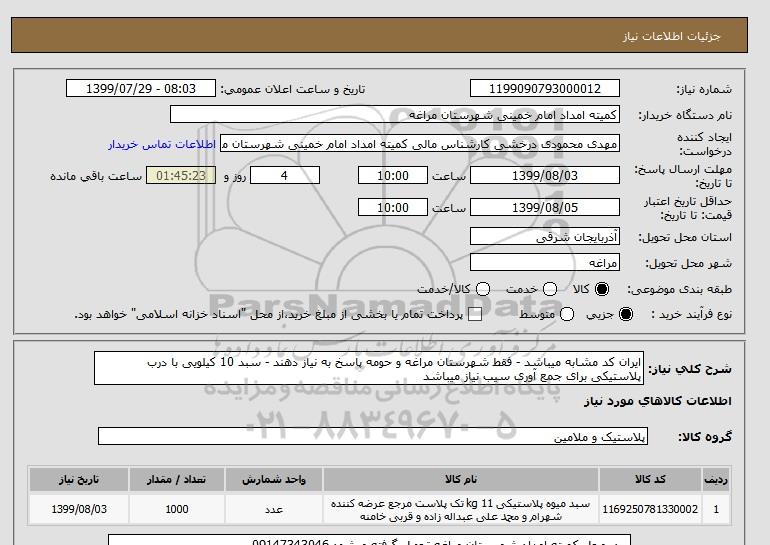 نام دستگاه خریدار:کمیته امداد امام خمینی شهرستان مراغه