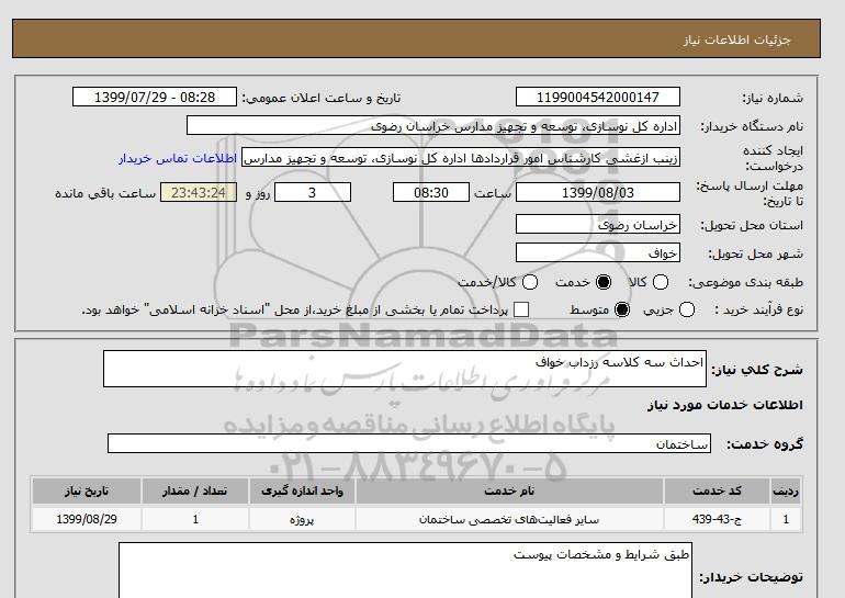 شرح کلی نیاز: احداث سه کلاسه رزداب خواف