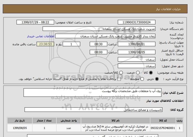 نام دستگاه خریدار:مدیریت شعب بانک مسکن استان سمنان