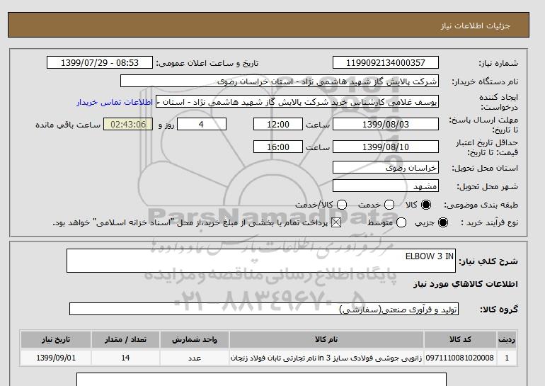 شرح کلی نیاز: ELBOW 3 IN