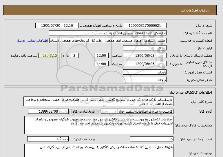 نام دستگاه خریدار:اداره کل کتابخانه های عمومی استان زنجان
