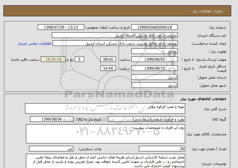 نام دستگاه خریدار:مدیریت شعب بانک مسکن استان اردبیل