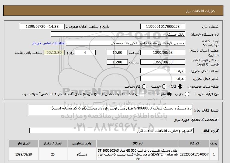 شرح کلی نیاز: 25 دستگاه دیسک سخت VNX600GB طبق پیش نویس قرارداد پیوست(ایران کد مشابه است)
