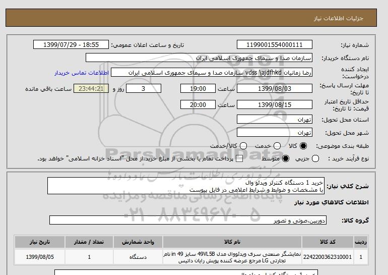 نام دستگاه خریدار:سازمان صدا و سیمای جمهوری اسلامی ایران