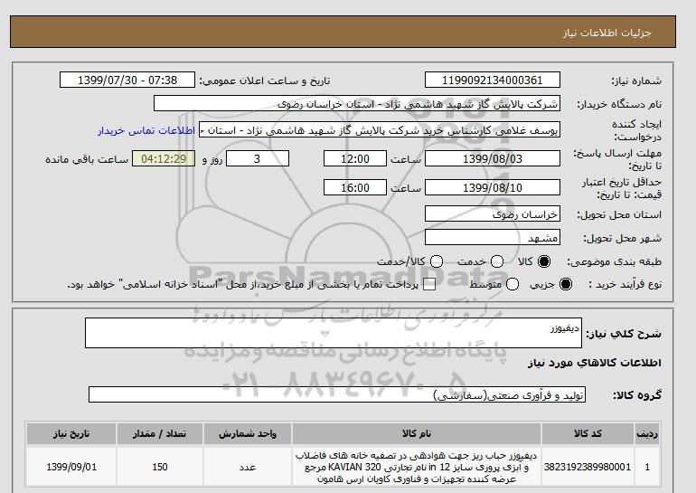 نام دستگاه خریدار:شرکت پالایش گاز شهید هاشمی نژاد - استان خراسان رضوی