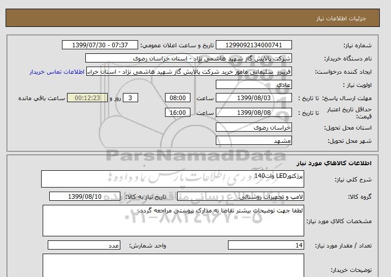 نام دستگاه خریدار:شرکت پالایش گاز شهید هاشمی نژاد - استان خراسان رضوی