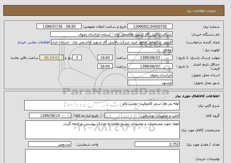 نام دستگاه خریدار:شرکت پالایش گاز شهید هاشمی نژاد - استان خراسان رضوی