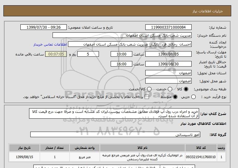نام دستگاه خریدار:مدیریت شعب بانک مسکن استان اصفهان