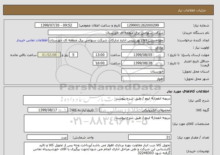 نام دستگاه خریدار:شرکت سهامی برق منطقه ای خوزستان