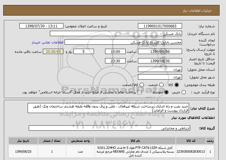 شرح کلی نیاز: خرید نصب و راه اندازی زیرساخت شبکه غیرفعال ، تلفن و برق بدون وقفه طبقه هشتم ساختمان ونک (طبق قرارداد پیوست و الزامات)