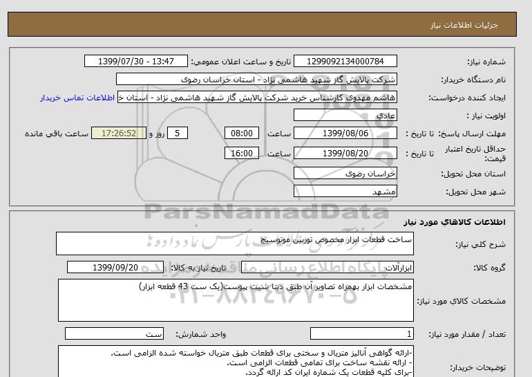 نام دستگاه خریدار:شرکت پالایش گاز شهید هاشمی نژاد - استان خراسان رضوی